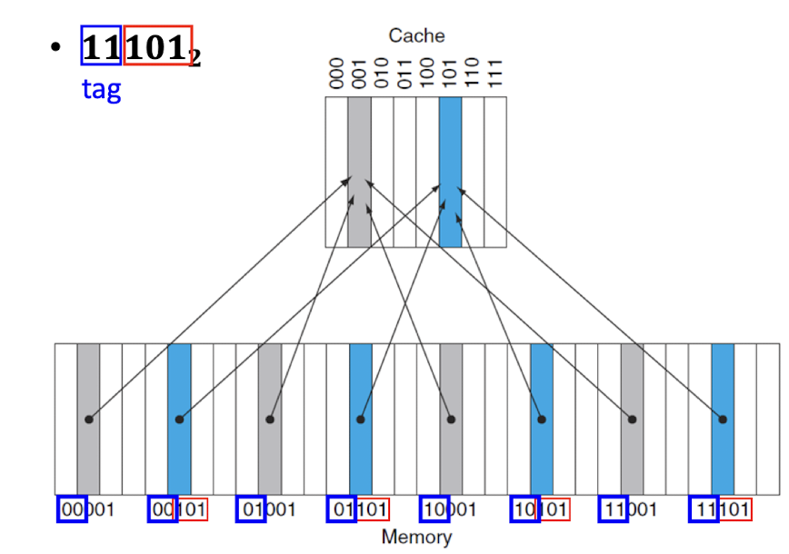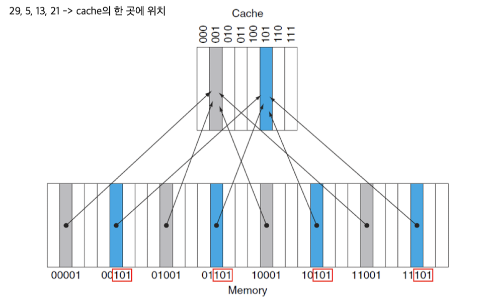 -> memory의 위치는 5bit인 것에 비해, cache는 3비트