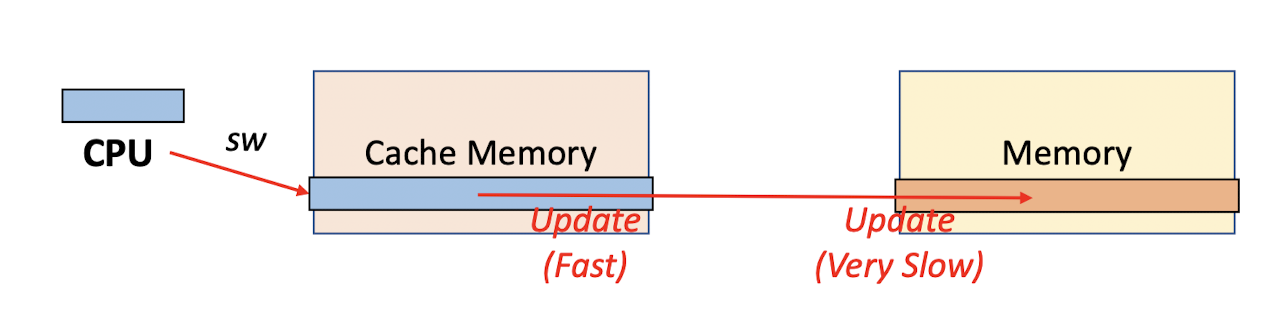 - cache memory에 sw하자마자(main memory와의 차이가 생기기 전에) -> main memory도 업데이트해주는 것