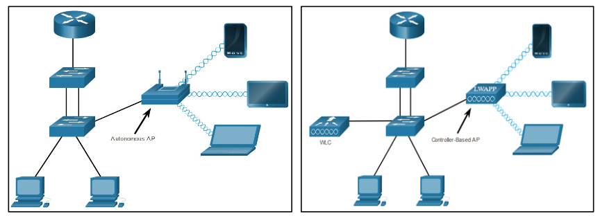 - 자율(autonomous) AP 및 컨트롤러-기반(controller-based) AP - (Lightweight Access Point)라고도 함