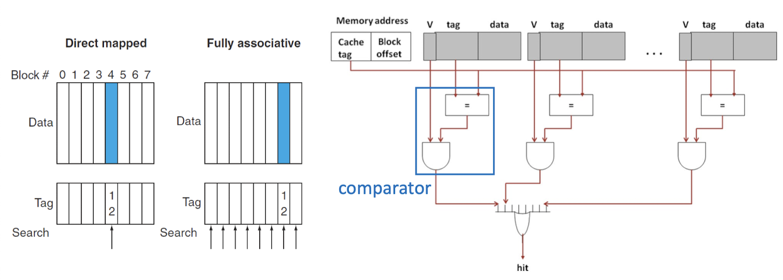 - cache의 모든 위치에 대해 comparator가 병렬적으로 연산을 수행 -> hardware cost가 매우 늘어남