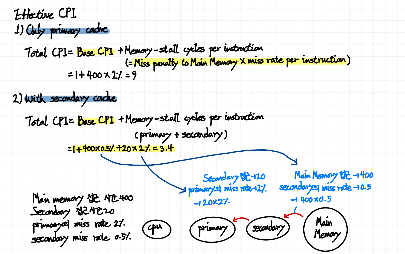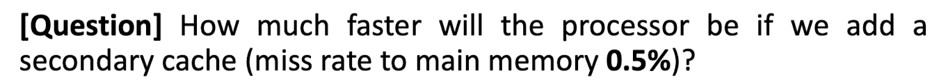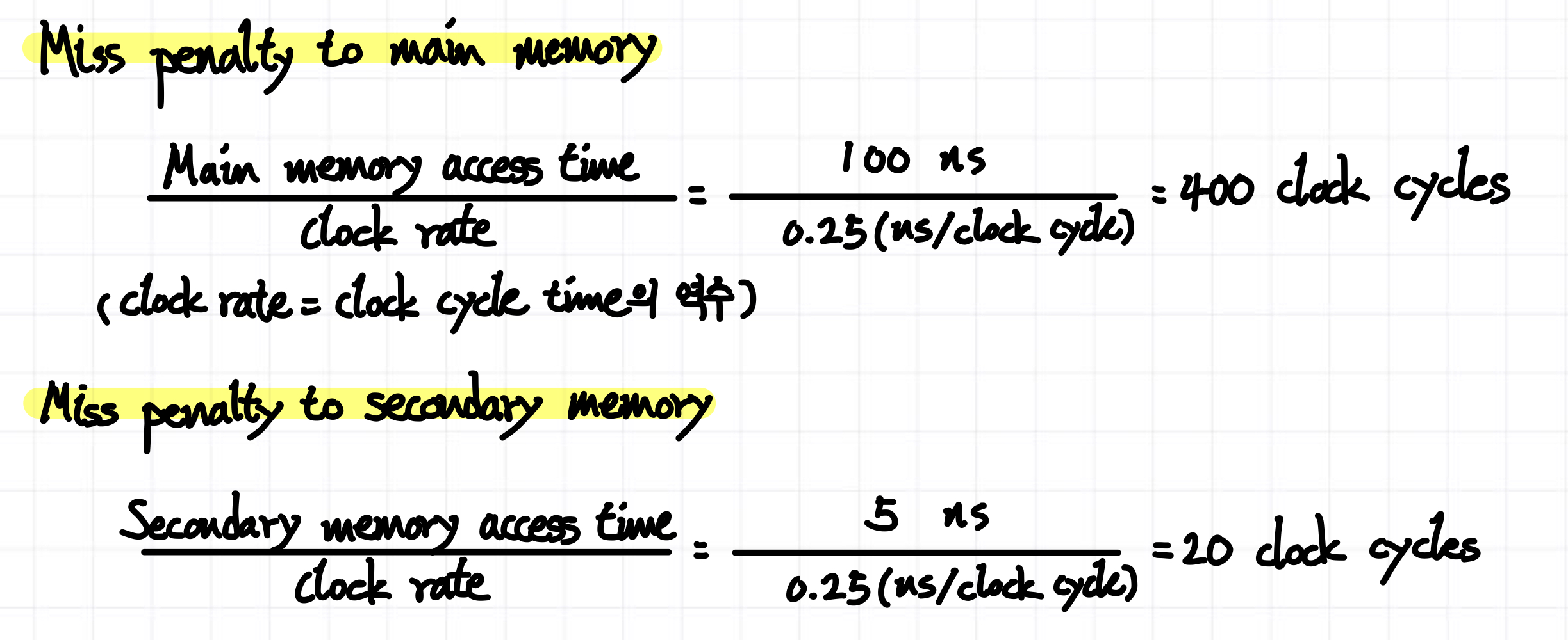 - primary & secondary cache에 모두에 원하는 데이터가 없을 시 -> 더 큰 miss penalty 발생