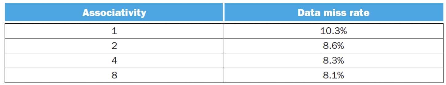 자유도(associativity)가 증가할수록 miss rate는 낮아진다.