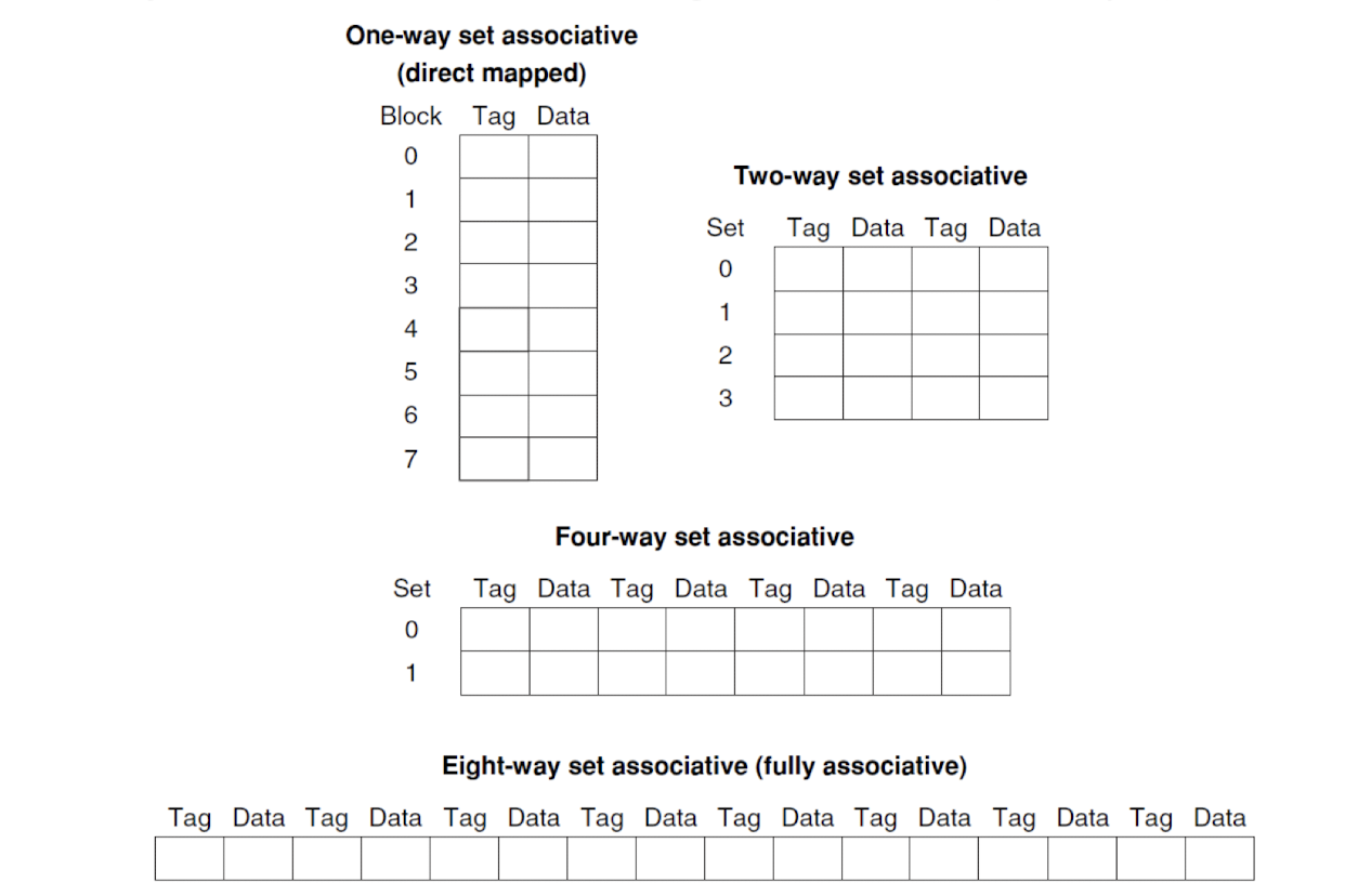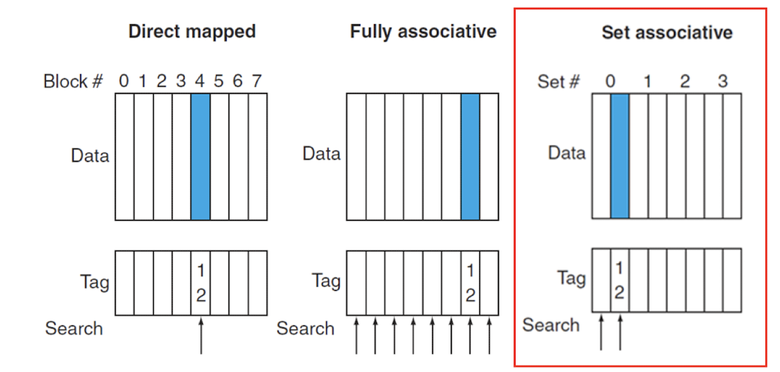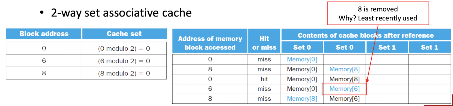 - set number는 (Block number) modulo (Number of sets in the cache)로 결정