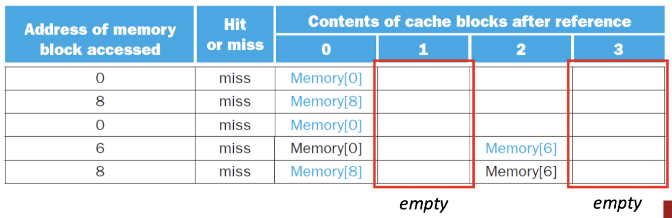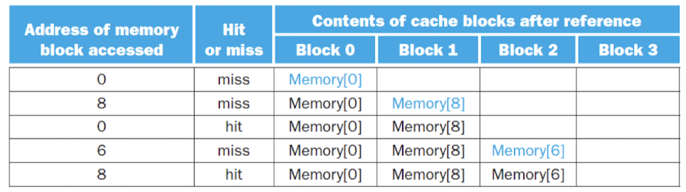 8 -> miss -> 1번 block에 Memory[8] 데이터 저장
