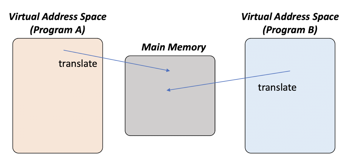 - 프로그램마다 각자의 page table이 존재 -> 프로그램의 virtual address space를 메인 메모리로 매핑