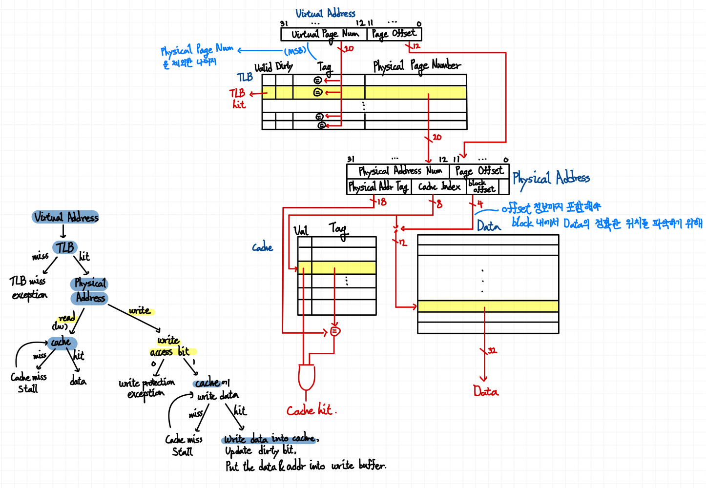 | Miss | Hit | Hit | 가능: 최근에 부르기는 했으나, TLB에 담길 만큼 최근에 부르지는 않았을 경우. TLB보다 Cache의 크기가 더 크다. |