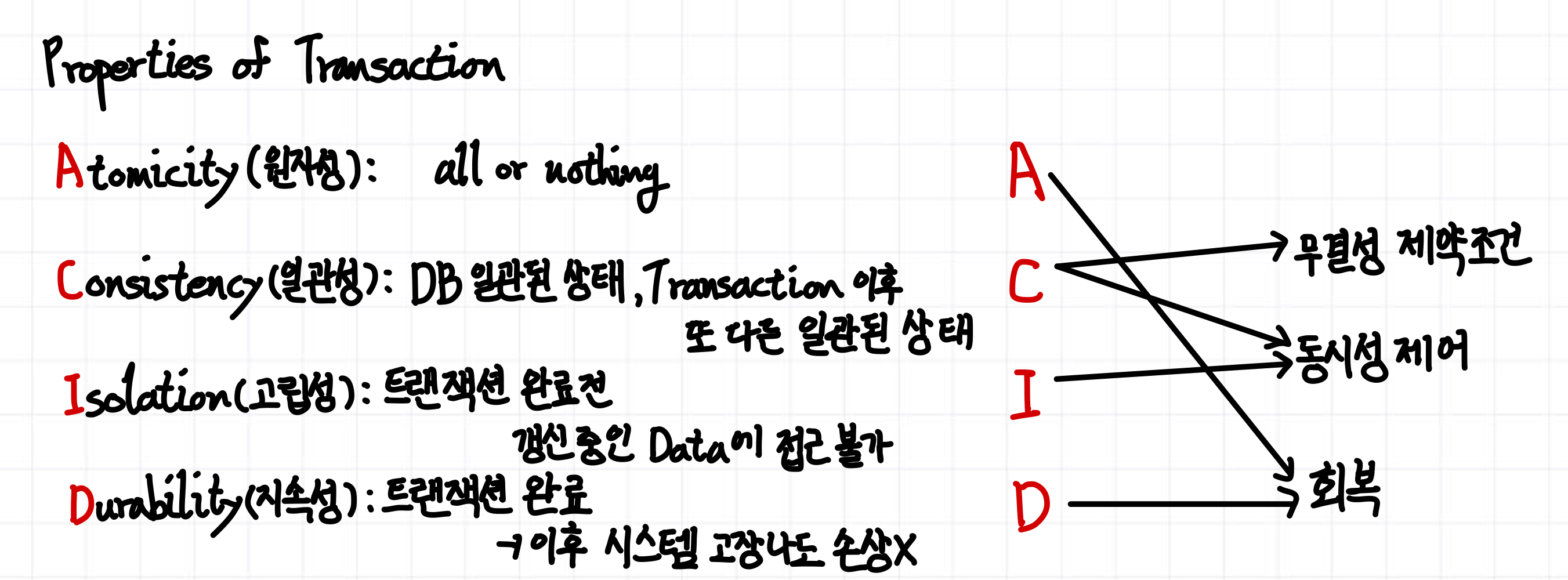 - 일단 트랜잭션이 완료되면 -> 이 트랜잭션이 갱신한 것은 후에 시스템 고장 발생해도 -> 손상 X
