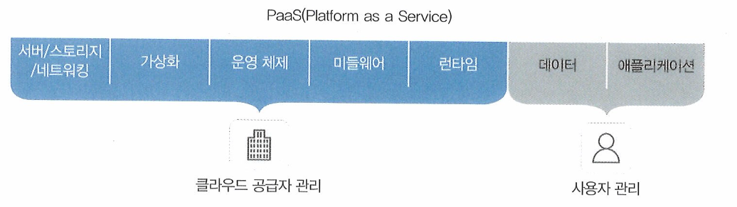 - 클라우드 공급자가 해당 인프라 영역 관리하고 서비스 제공, 클라우드 사용자가 나머지 영역 관리