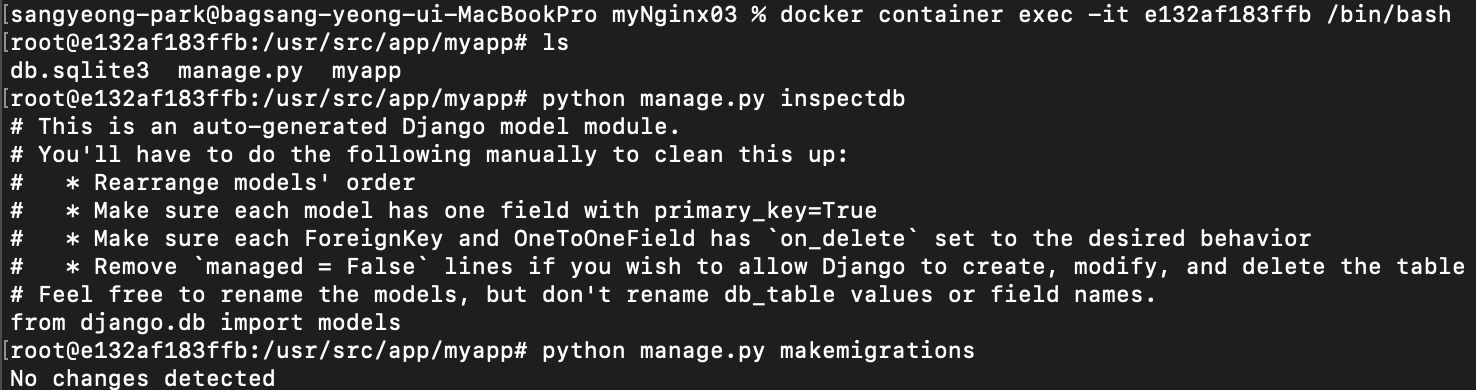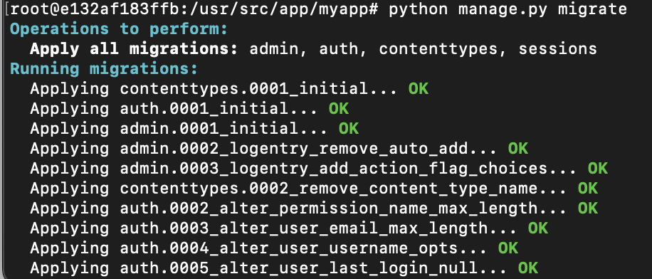 - migrate: 실제 데이터베이스에 변경사항을 저장하는 명령어