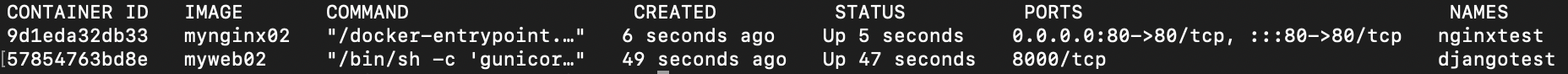docker container run -d --name djangotest --network mynetwork04 myweb04