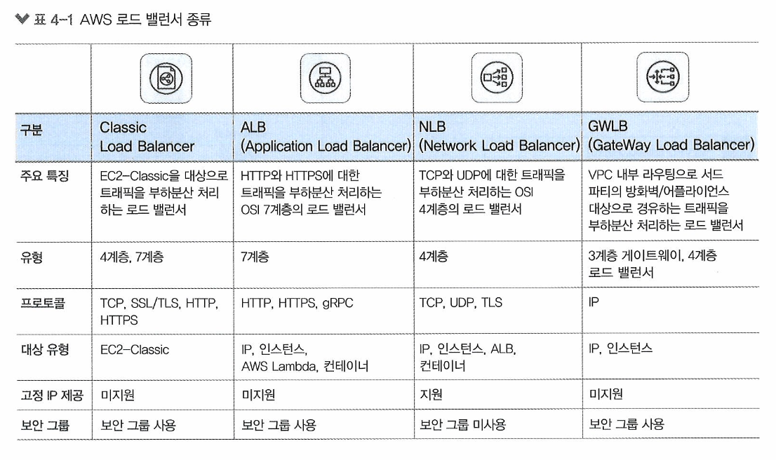 Amazon ELB에서 제공하는 load balancer 종류는 트래픽의 프로토콜 종류나 서비스 목적과 대상에 따라 네 가지로 분류