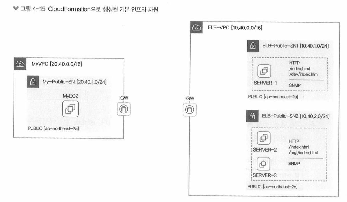 - ELB-VPC: 실습에 사용되는 서버가 위치 -> 첫 번째 서브넷에 1개, 두 번째 서브넷에 2개