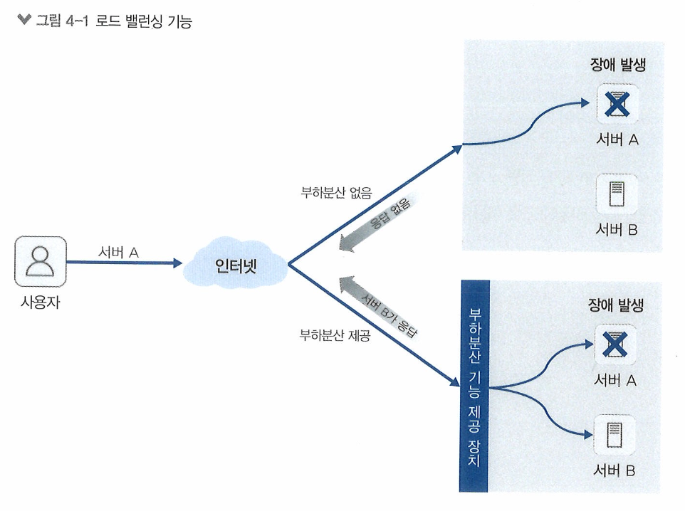 - 부하분산: server가 client의 요청을 받아 처리하는 과정에서 발생하는 부하(연산 작업)에 대해 동일한 목적을 수행하는 다수의 server에 분산 처리하는 기능