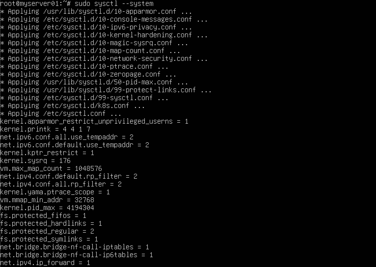 - sysctl 매개변수를 설정하면, 재부팅 후에도 값 유지