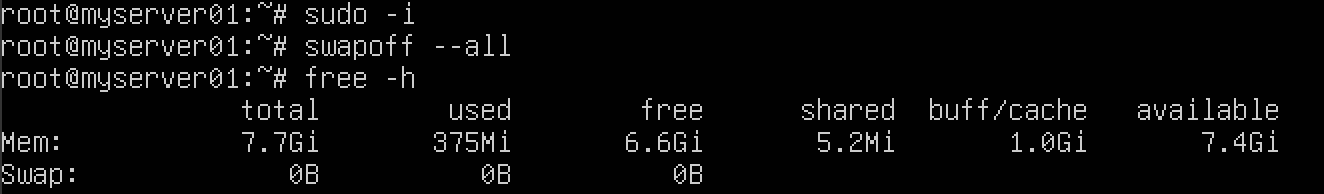 -> swapoff --all: swap 메모리 비활성화