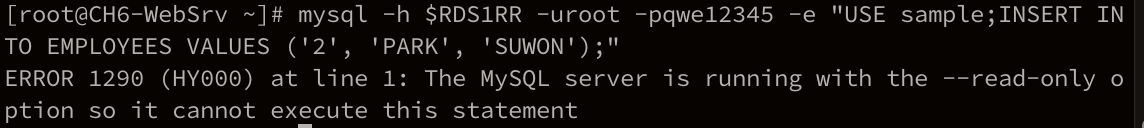 -> 웹 서버에 접속해서 각각의 RDS 엔드포인트를 변수로 선언