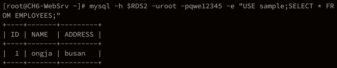 mysql -h $RDS1 -uroot -pqwe12345