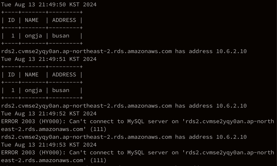 현재 RDS2는 multi-AZ 기능 동작 X (단일 데이터베이스로 동작) -> 장애에 대한 failover(장애 극복 기능) 수행 불가능
