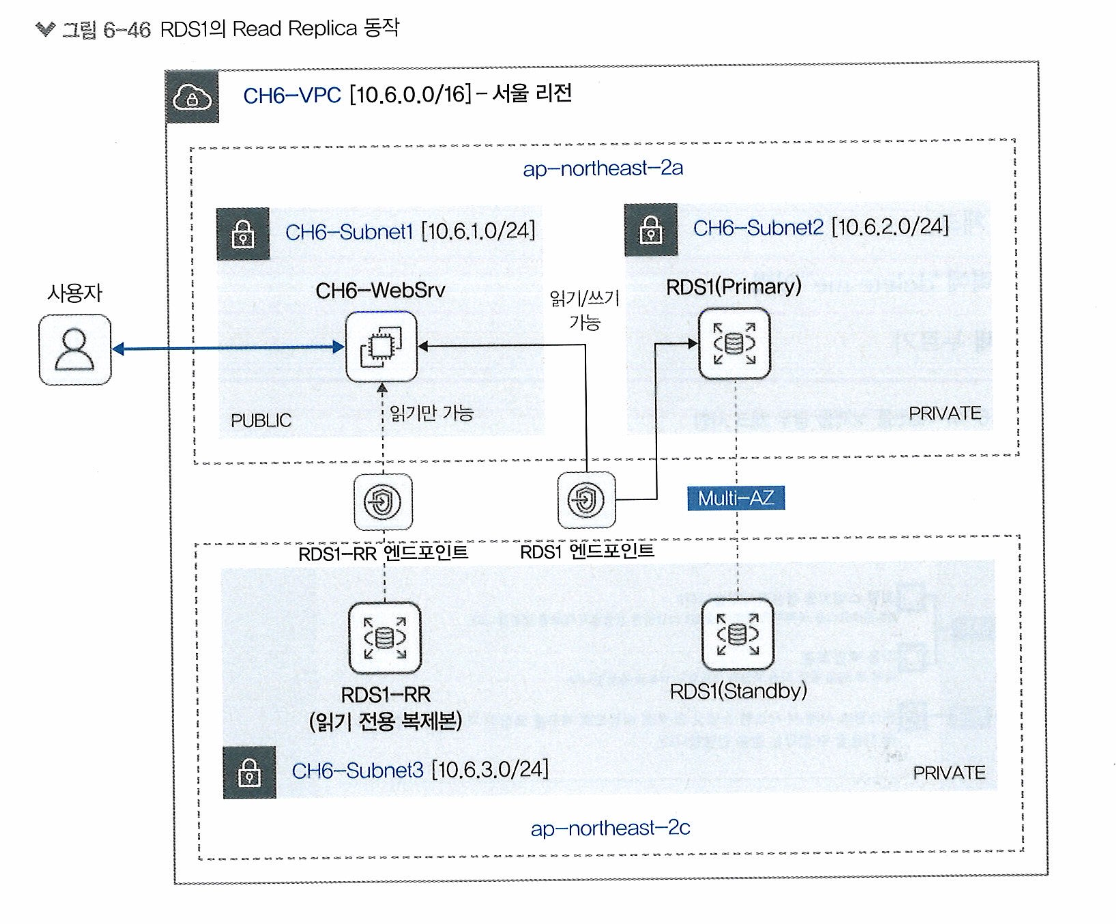 - 데이터 처리 성능 확장을 위한 Read Replica(Multi-AZ 같은 고가용성 서비스가 아님)