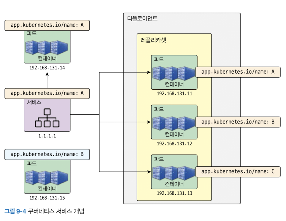 - 파드가 client에게 서비스를 제공하려면 해당 파드의 IP 주소를 알아야 함 -> pod는 일시적 존재로 수없이 생성 소멸을 반복