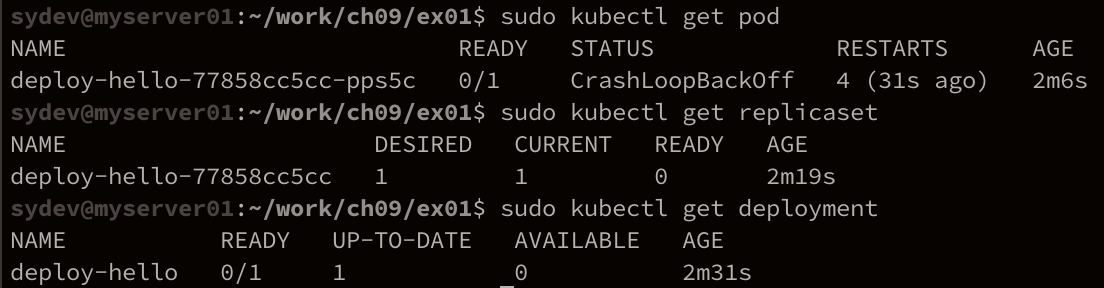 - CrashLoopBackOff: 컨테이너가 재시작되기 전에 대기하고 있는 상태