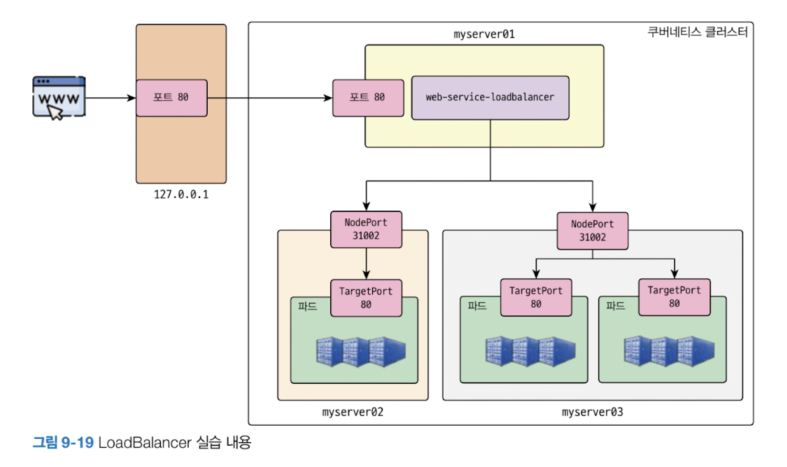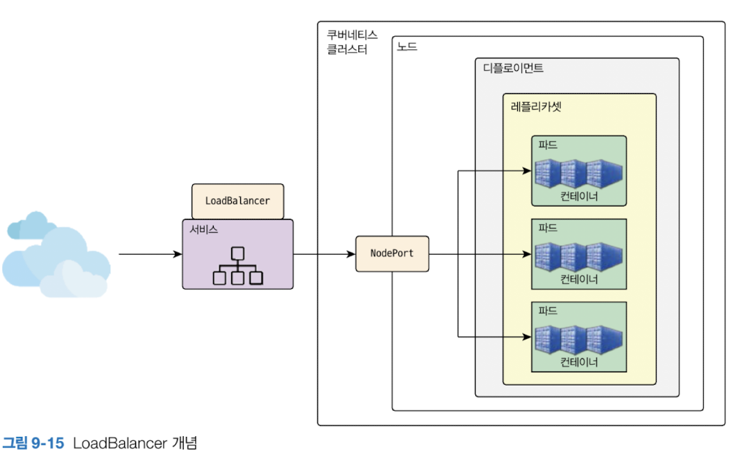 -> LoadBalancer를 활용하면 cluster 외부에서도 cluster 내부에 존재하는 pod에 접근 가능