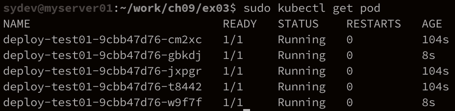 -> 위 manifest 파일에서 replicas를 5로 변경
