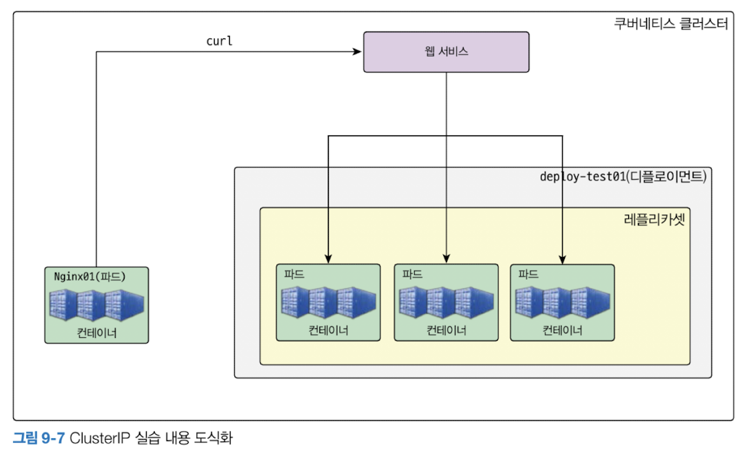 - Cluster 내부에서만 접근 가능한 IP 할당, 외부에서는 접근 불가
