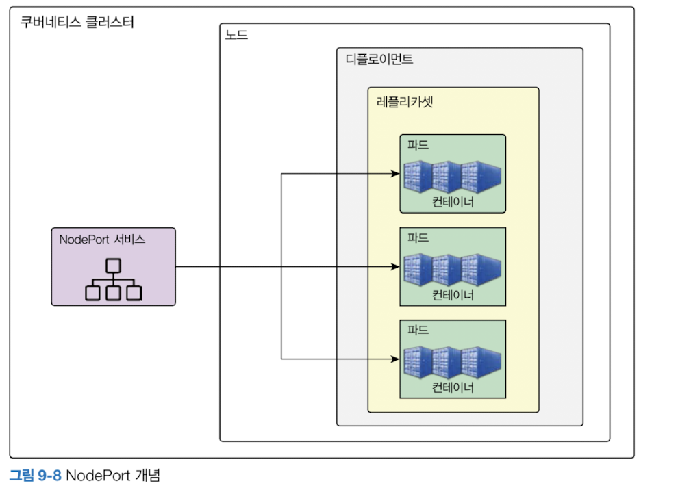 - NodePort: 각 노드의 특정 포트를 통해 외부 접근을 제공하는 유형