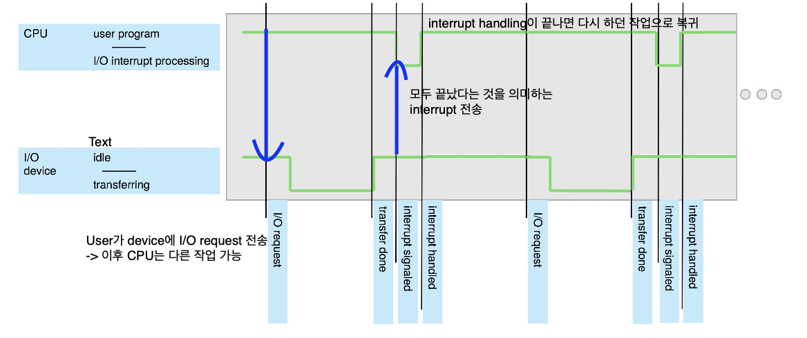 - I/O request가 발생하면, device driver를 통해서 해당 device controller에 명령을 전달
