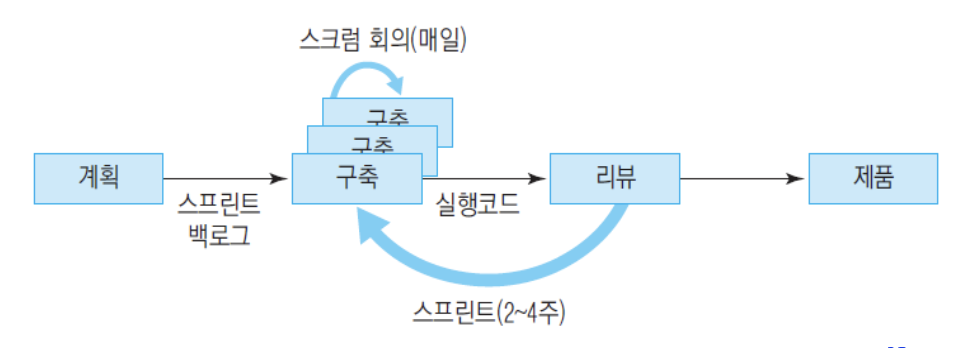 - 과도한 모델링과 문서화의 짐을 과감히 생략하고 개발에 집중 -> Extreme Programming, Scrum, DSDM(Dynamic systems development method)