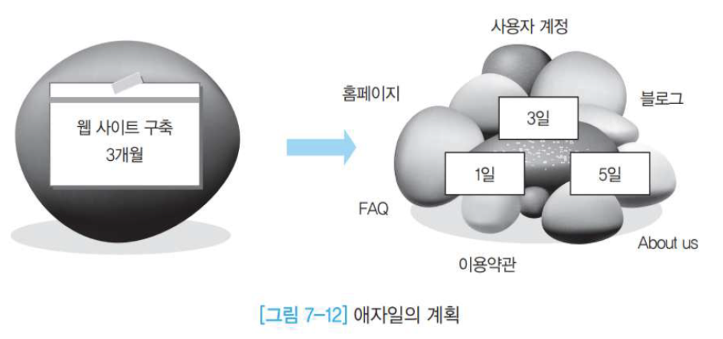 - 고객 중심 -> 실행되는 SW 기능을 중심으로 프로젝트를 계획