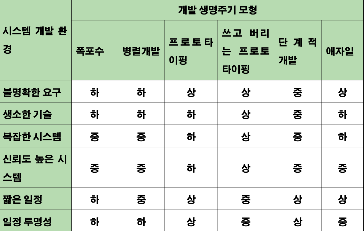 - 설계 중인 시스템이 잘 이해되지 않는 한 폭포수 모델은 일정을 맞추지 못할 위험