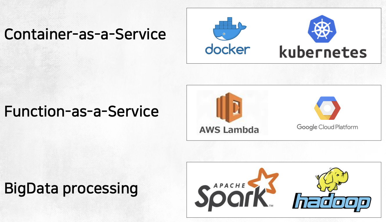 - Google AppEngine: hardware(CPU, OS) + library, application 정도까지 제공