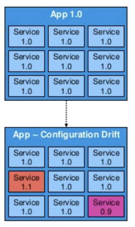 - updates를 진행할수록 -> each server는 unique한 변화를 가짐. -> 다른 service들과 약간의 차이가 생김 >> configuration drift