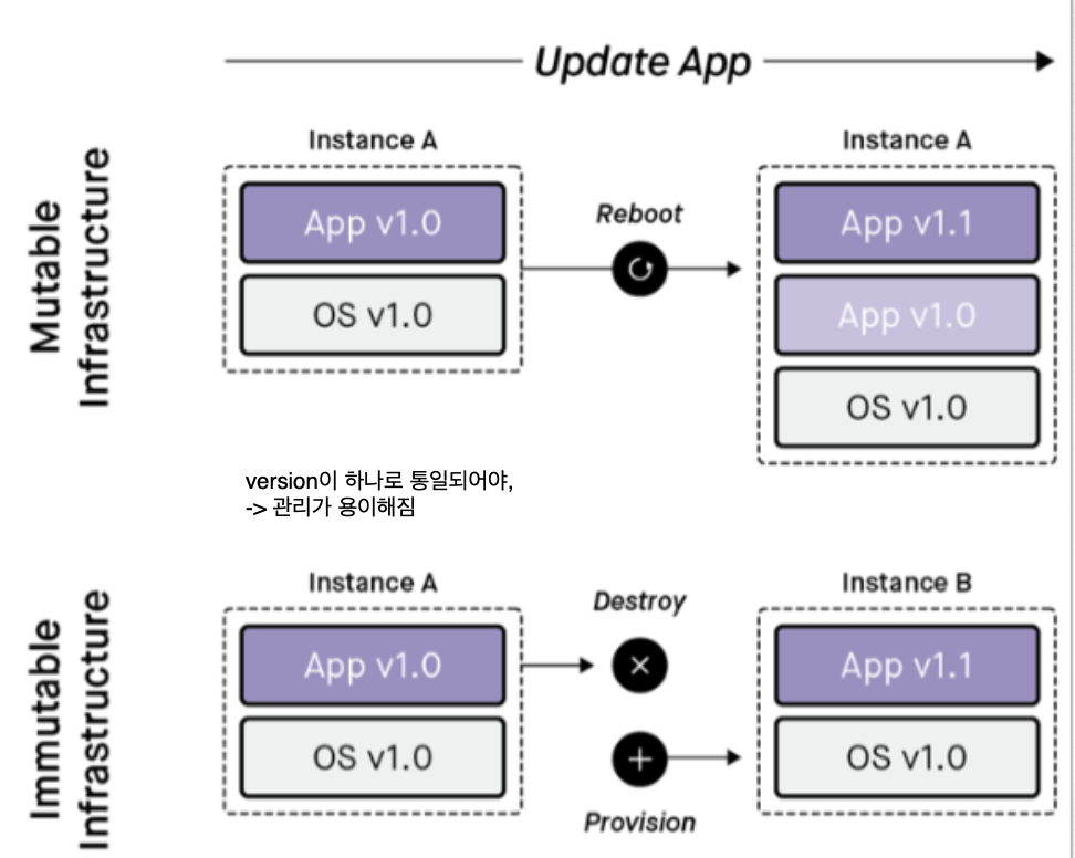 -> Immutable Infrastructure 방식은 instance에 변화가 생기면, destroy 후에 새로 provision한다.