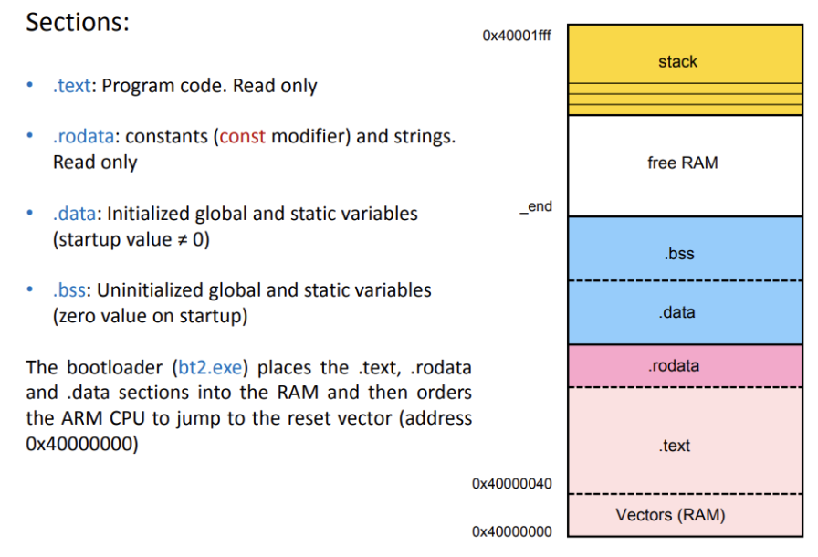 C compiler. Memory map. Program in RAM