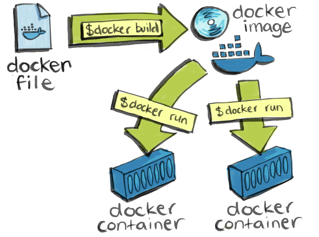 - image 실행 -> memory 위에서 container가 됨 (multiple containers가 같은 image로부터 발생)
