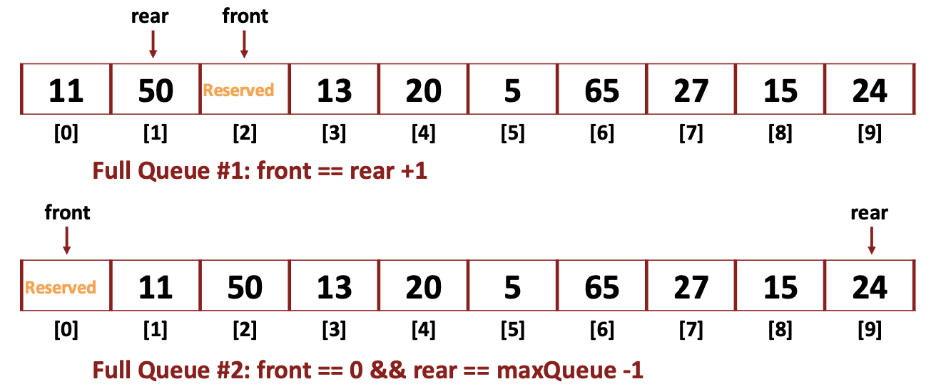 -> 빈 공간이 없이 구현할 경우, full과 empty 상황이 겹침