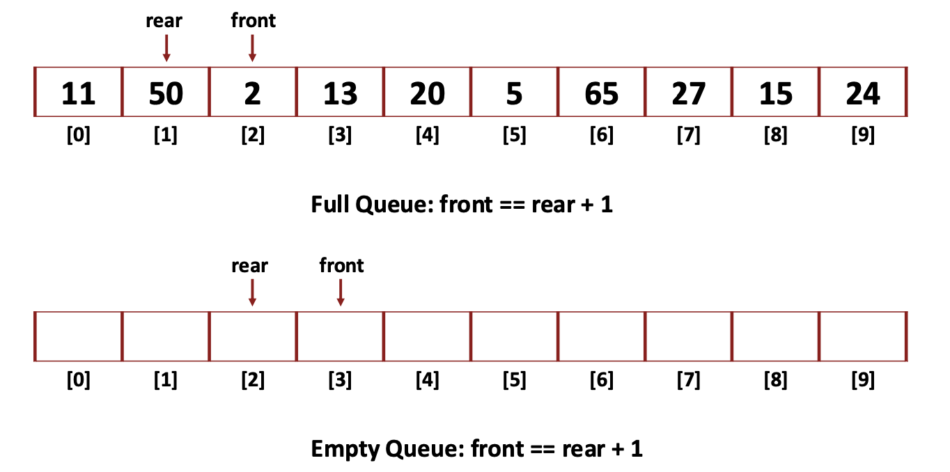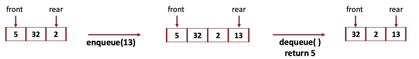 - rear - new element가 삽입되는 위치 -> enqueue