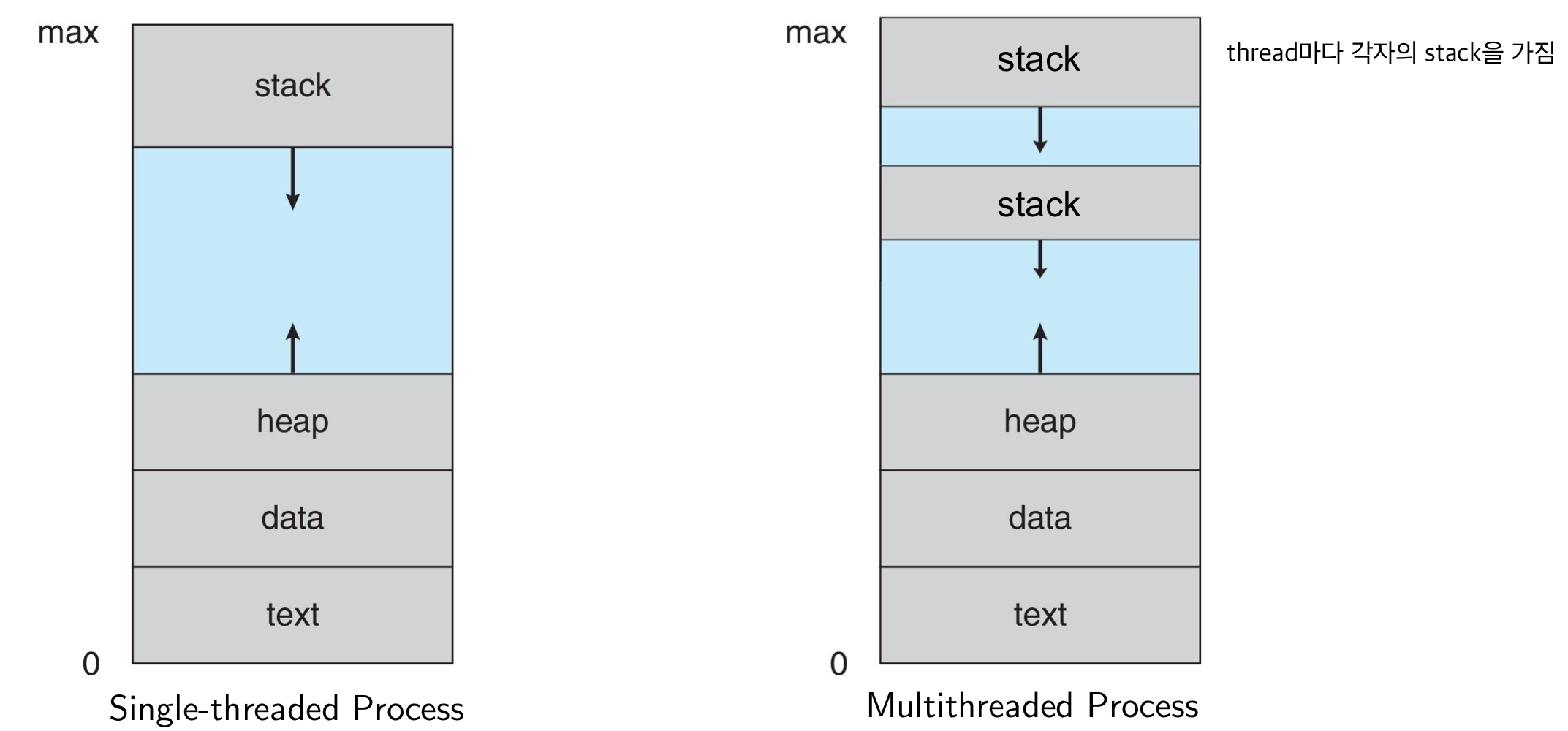 - multi-thread -> thread가 여러 개 -> 서로 다른 thread는 각각 다른 instructions 수행