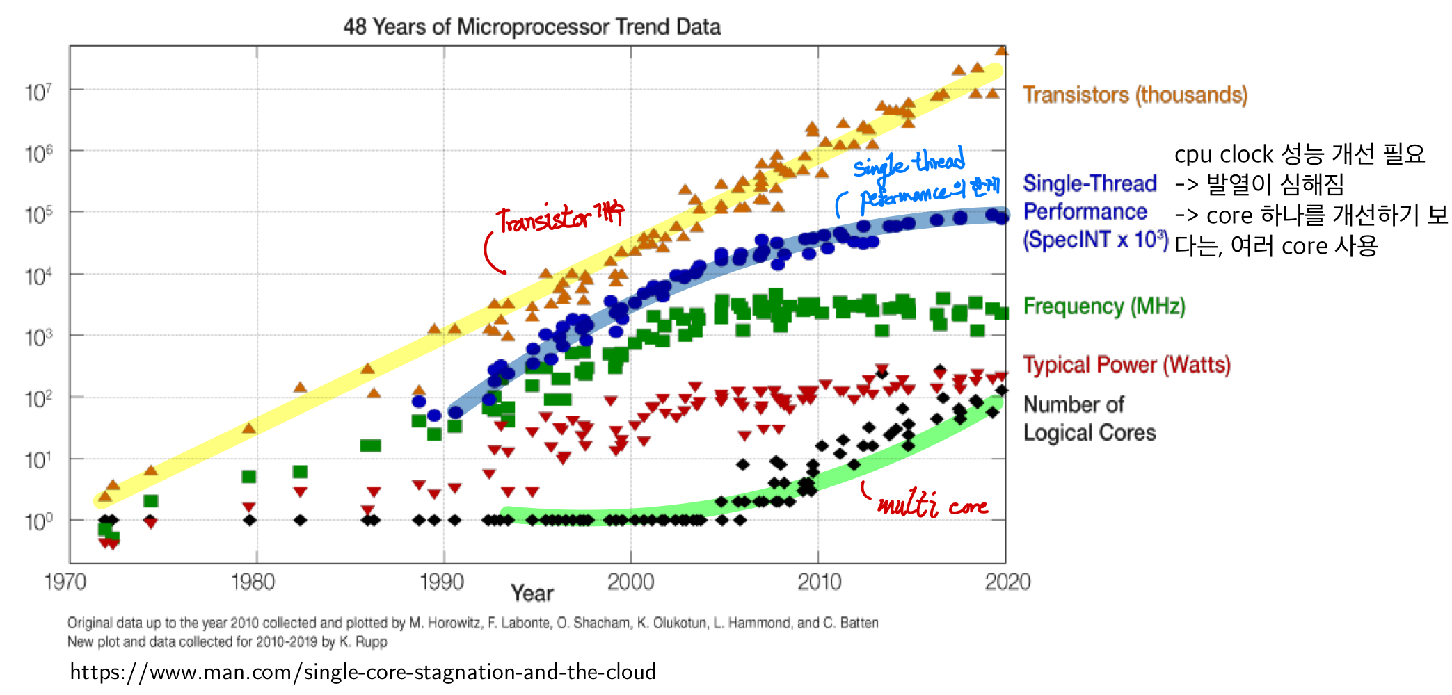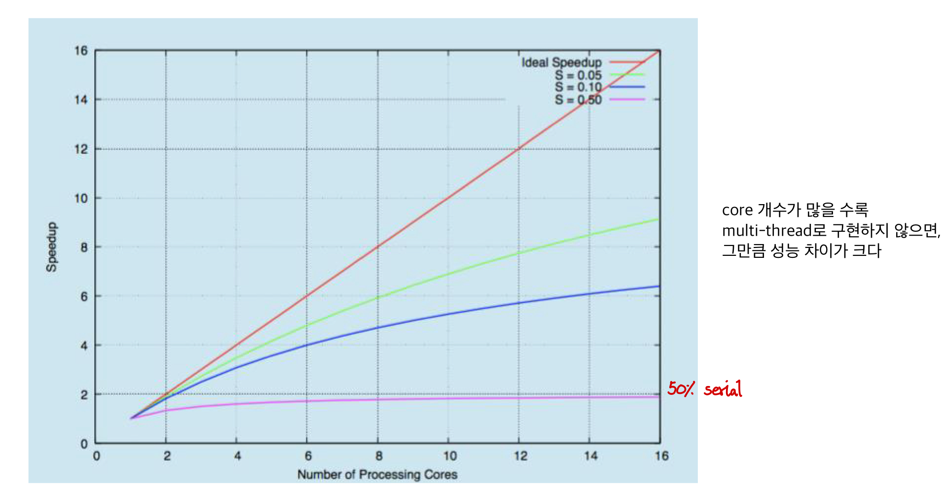 -> core 개수가 많아질수록, multi-thread로 구현하지 않으면 성능 차이가 크다.