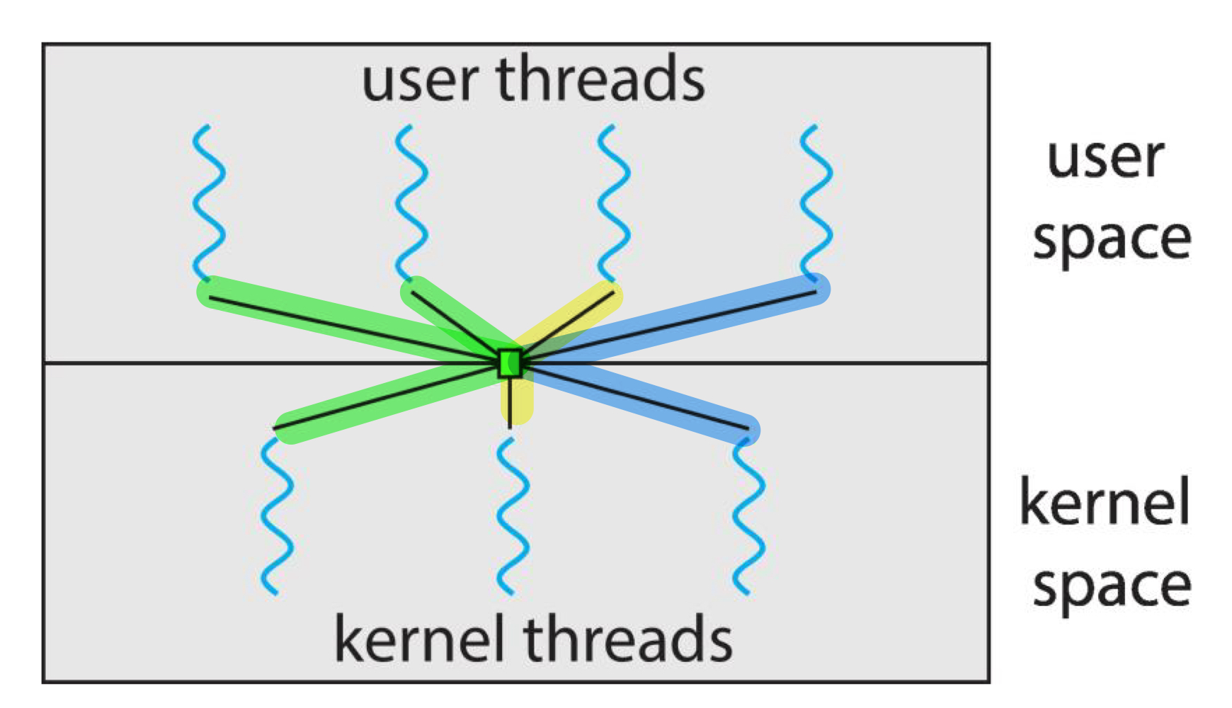 - user/kernel threads 사이에 관계는 반드시 존재