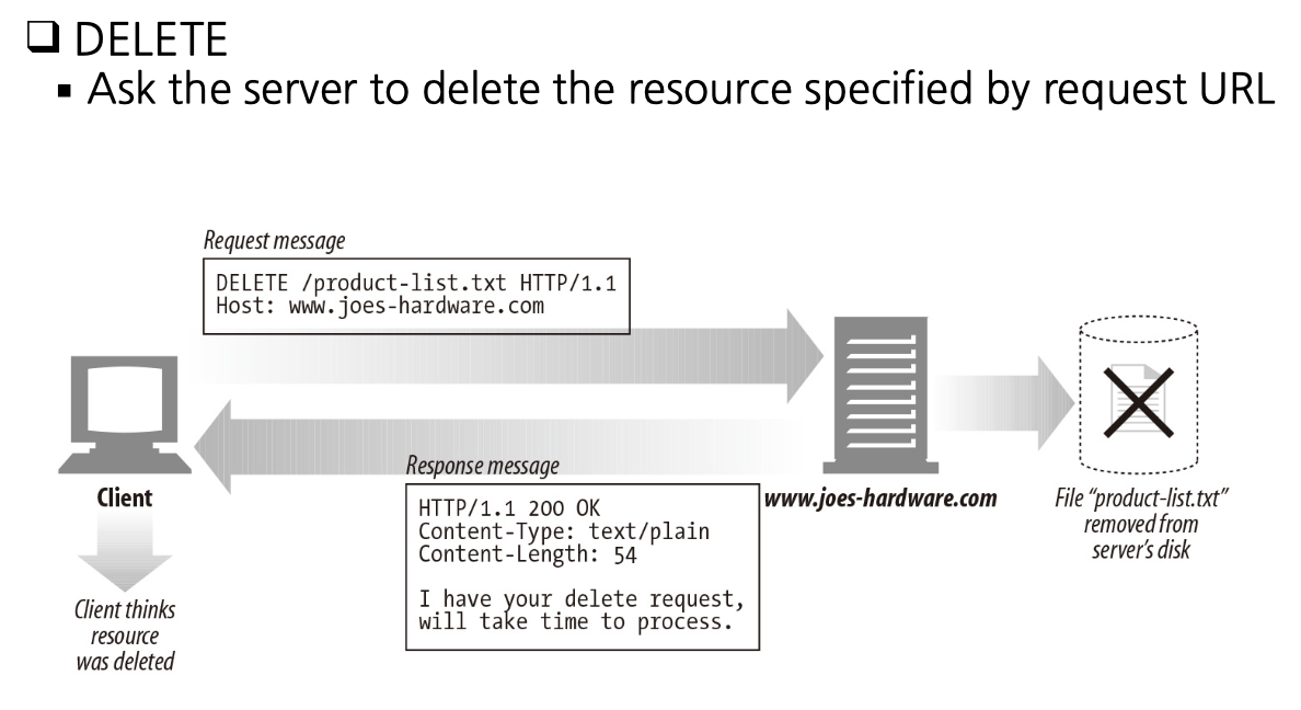 - request URL에 의해 특정된 resource를 server에서 삭제 요청
