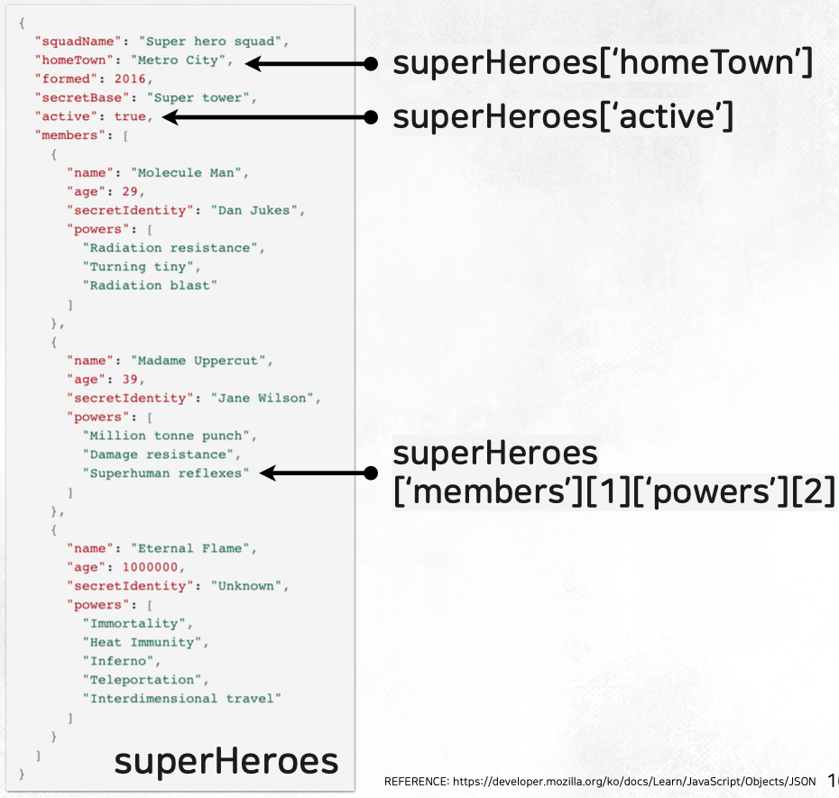 - 문자열과 property 이름 작성 시에 큰 따옴표만을 사용