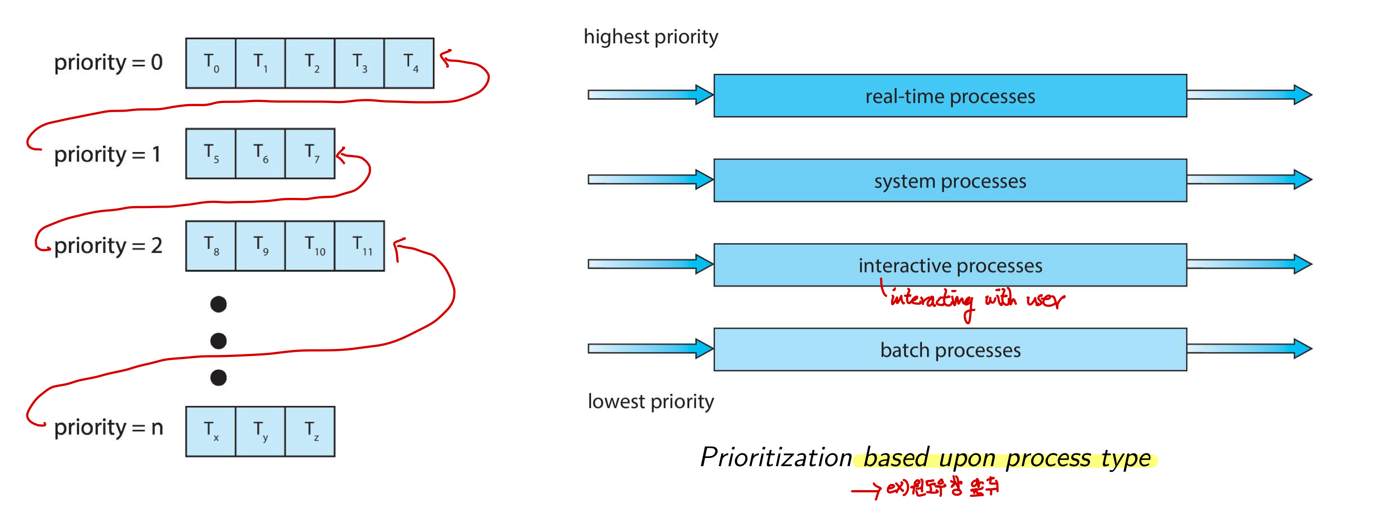 -> process type에 따라 우선순위 부여