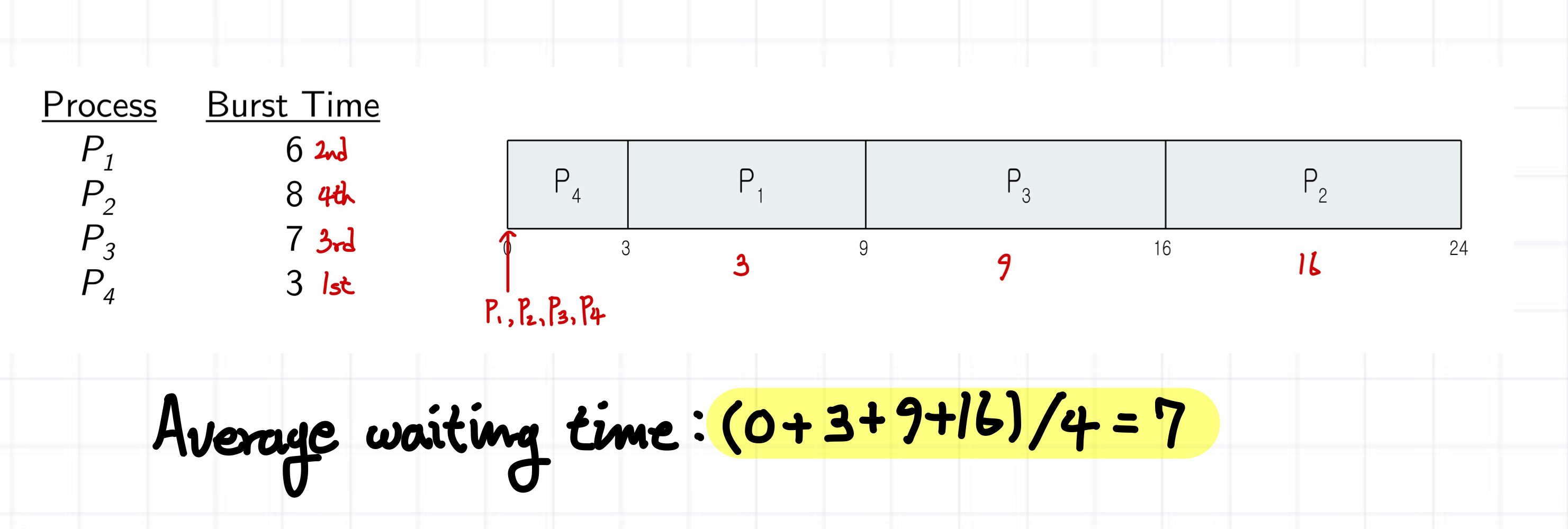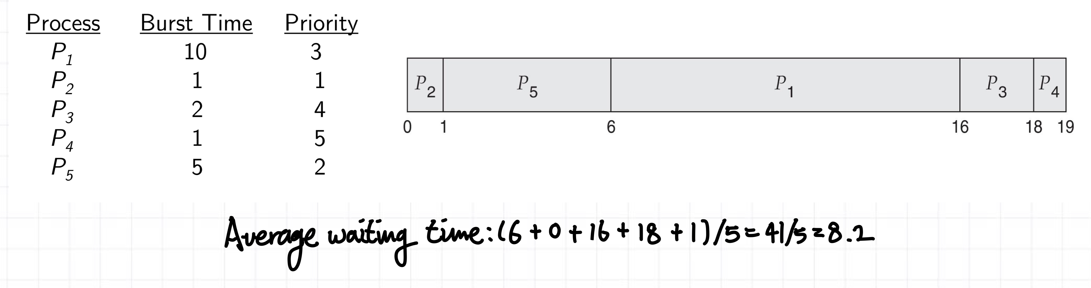 Nonpreemptive -> priority순서대로, but 중간에 cpu 소유권을 뺏지는 않음
