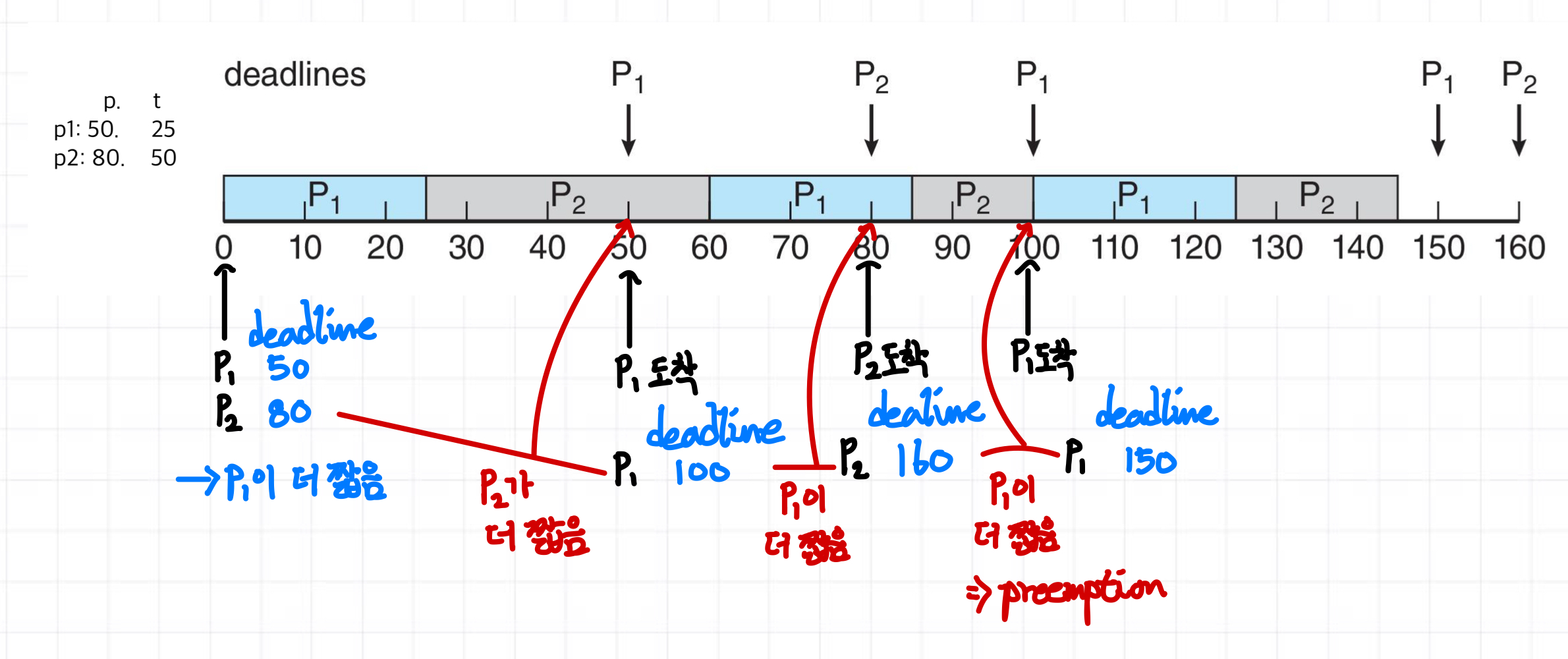 Preemptive scheduling: Running process가 실행 도중에 preempted될 수 있음