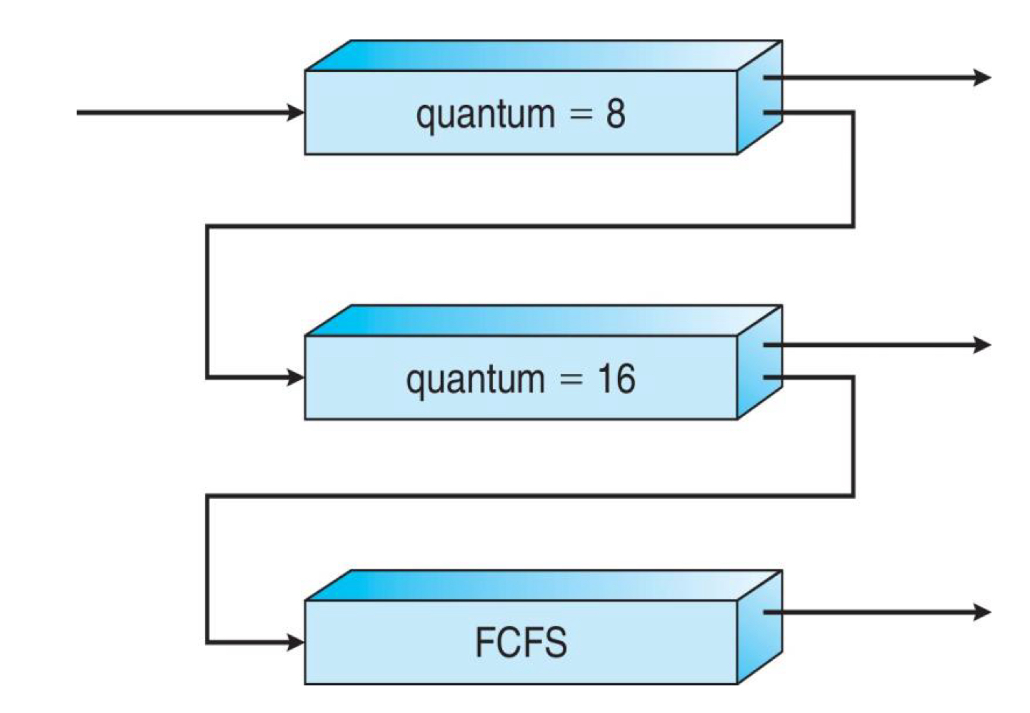 -> new process가 Q0에 진입(RR) -> 8 milliseconds 안에 완료하지 못하면 Q1으로 이동