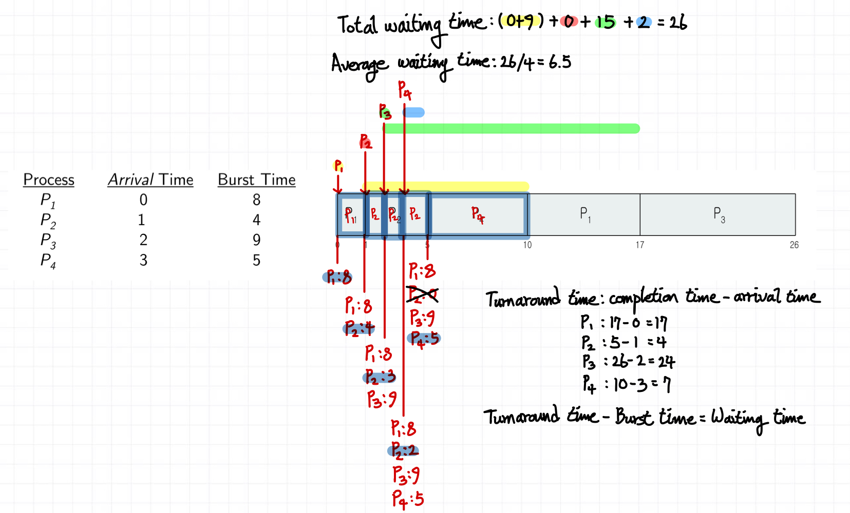 process가 완료된 시간 - 프로세스가 도착한 시간 -> Completion Time - Arrival Time